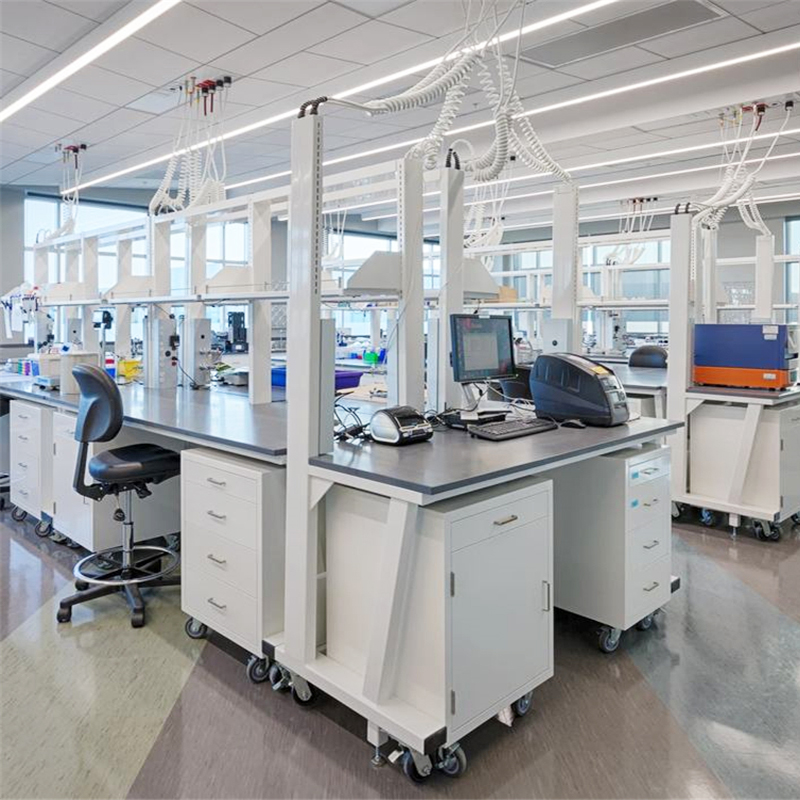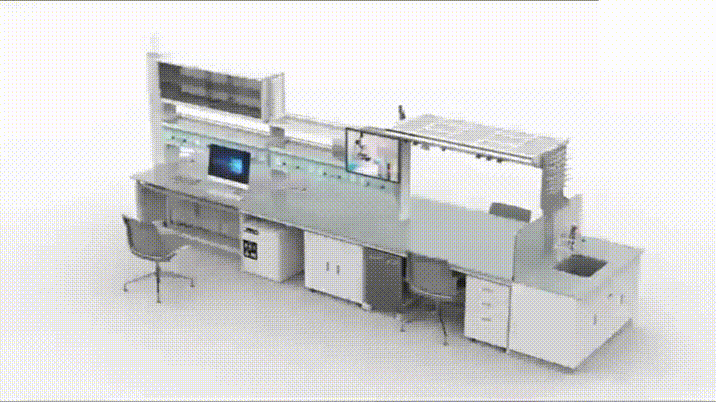 臺面上方預(yù)設(shè)了四個功能柱四面都可安裝功能配件,其間預(yù)留的管道也可方便連接水、電、氣路,滿足用戶開展實驗的各種需要。